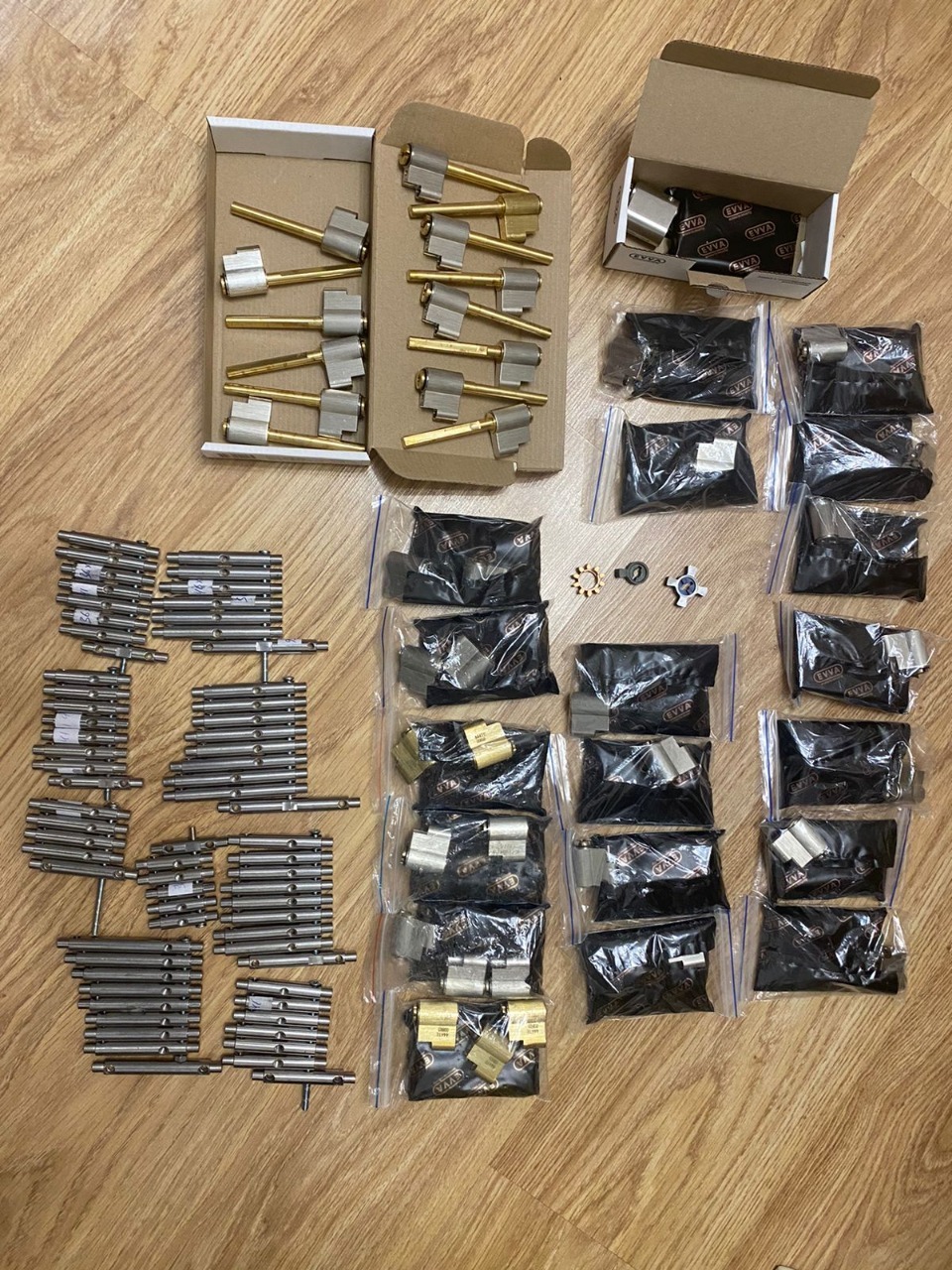 EVVA 3KS; Личинка EVVA 3KS имеет несколько степеней защиты, но самой примечательной является «система трех кривых», которая выглядит очень оригинально. Она имеет вид трех шифровальных пазов, в честь них и назвали технологию, по ним со всех сторон ключа перемещаются 12 кодовых пластин, действующих независимо.